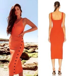 SELF PORTRAIT Fine Rib Knit Sleeveless V-Neck Side Button Midi Sheath Dress M