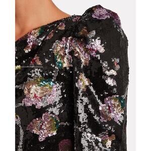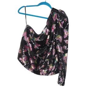 SELF PORTRAIT Sequin Top Women's 10 One Shoulder Midnight Bloom Disco Velvet.