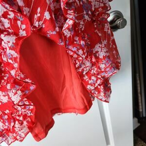 SELFIE LESLIE Laney Red Floral Chiffon Ruffled Mini Dress Womens Extra Large XL
