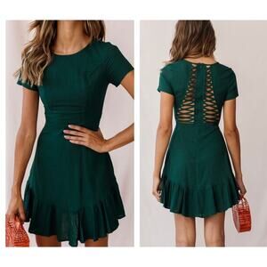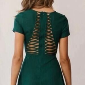SELFIE LESLIE Meilani A-Line Forest Green Skater Criss-Cross Back Dress Junior L