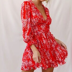 SELFIE LESLIE Laney Cutout Back Ruffle Detail Floral Dress Red size medium