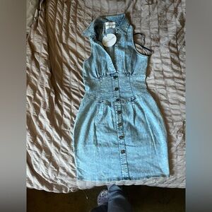 SELFIE LESLIE South Beach Faux Placket Collared Dress Denim Sz S