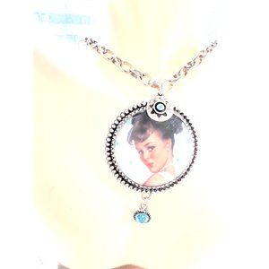 SELFIE Woman Pendant with Chain Necklace and Blue Imitation Crystals