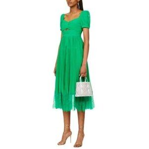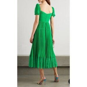 SELF-PORTRAIT Corded Lace Trimmed Cutout Pleated Chiffon Midi Dress Size 4 New