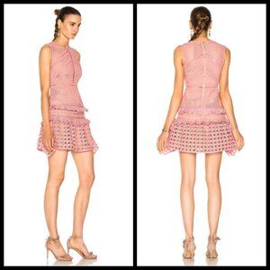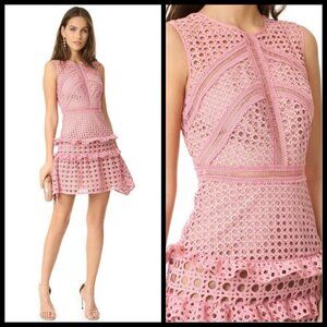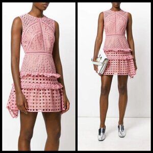 💕SELF-PORTRAIT💕 Crosshatch Frill Mini Dress ~ Guipure Lace Pink US 4 NWT