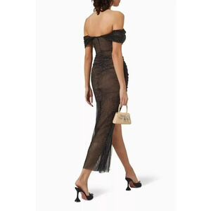 SELF-PORTRAIT Embellished Mesh Off-shoulder Black Dress Gown Cocktail Sz 0