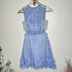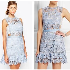 SELF-PORTRAIT Guipure Lace Bandeau Mini Dress Light Blue Sz 0 $465 {WW44}