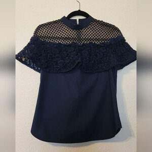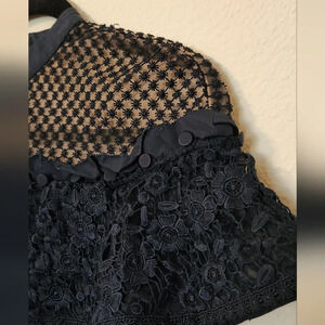 Mesh shoulders with crocheted overlay at bust, Back zipper and eye hook closure.