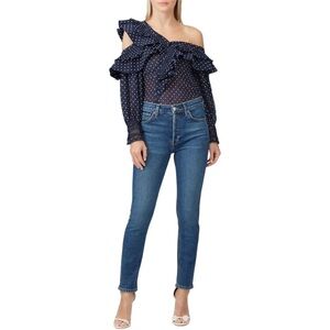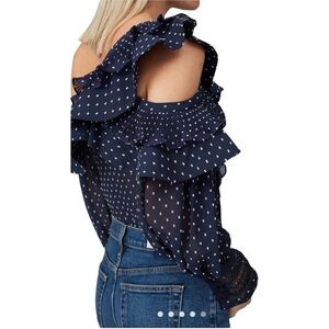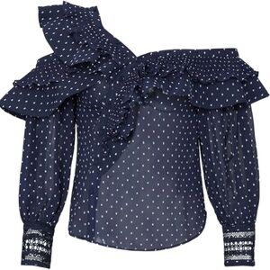 Blue printed polyester (100% Polyester). Top. Long sleeves. V-neckline. Imported