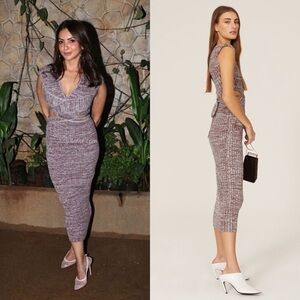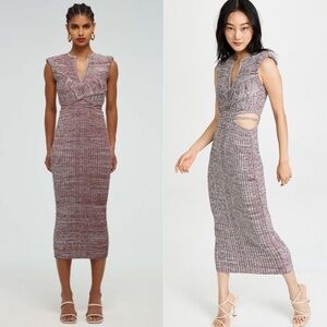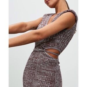 SELF-PORTRAIT Rib Knit Crossover Front Sleeveless Cutout Bodycon Midi Dress S
