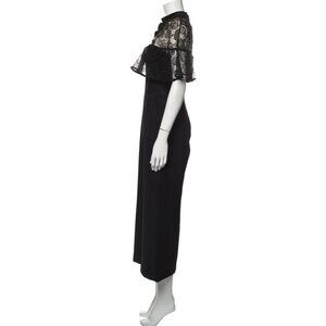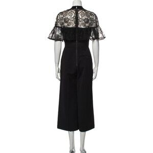 SELF-PORTRAIT Women's Black Crepe Ruffled Lace Panel Wide Leg Jumpsuit Size 8