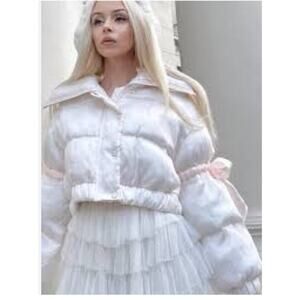 SELKIE Sz 2x Silk Strawberry Milk Marshmallow Puffer Coat Jacket NWT