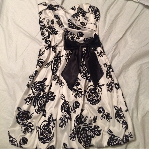 CUTE STRAPLESS BLACK& WHITE DRESS ROSE PRINT DRESS//WORN ONCE