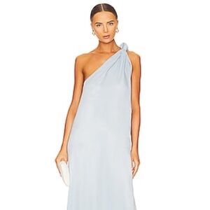 SELMACILEK $450 One Sleeve Satin Maxi Dress in Baby Blue
