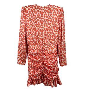 SELMACILEK Revolve Printed Mini Dress Size Medium Orange Floral Shoulder Pads Ruched