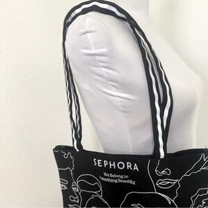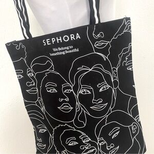 SEPHORA Large Canvas Tote Bag Graphic Outlines of Faces Black and White NWOT