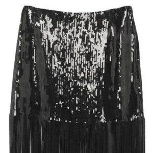 SEQUIN FRINGE SKIRT - BLACK