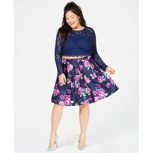 SEQUIN HEARTS Long Sleeve Lace Party cocktail Top NWT Plus Size 24
