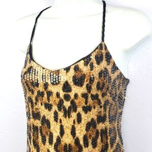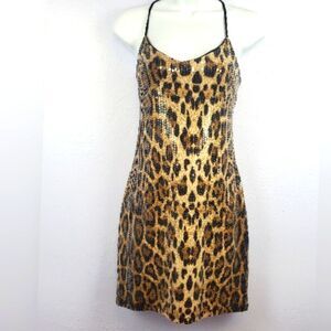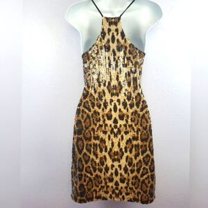 Gorgeous brand new sequined animal print slipover mini dress with racer back style. Is fully lined. Does have stretch to the fabric.