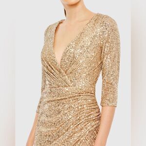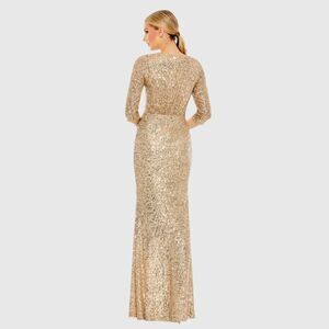SEQUINED DRAPED 3/4 SLEEVE GOWN MAC DUGGAL