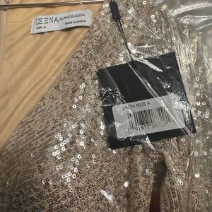 Fully lined though body and skirt; semi-sheer unlined sleeves