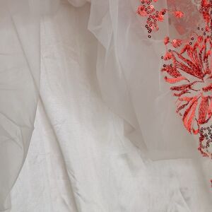 SEQUINED FLOWER EMBROIDERED MESH TULLE MIDI SKIRT IN RED sz 3XL