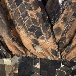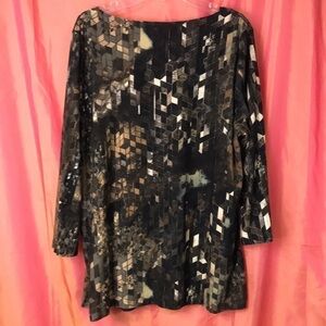 SERE nade Women’s Tunic with built in tank Brown Abstract XL Slinky Stretchy