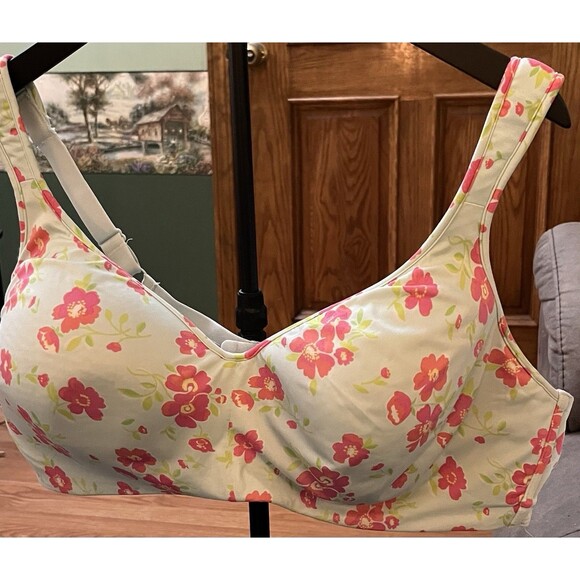 SERENADA 46C AQUA PINK FLORAL WIREFREE FULL COV SEAMLESS BRA