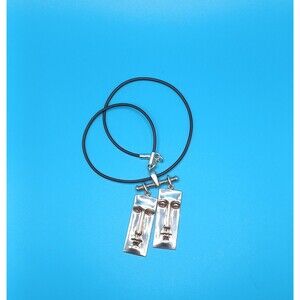 a sterling silver crossbar piece on a 15.25" long rubber cording necklace with a sterling s