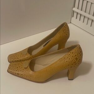 Beautiful mustard color thick heels Italian shoes. Gorgeous design leather with gold Lego in the front very comfy high quality shoes