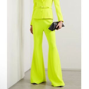 SERGIO HUDSON | NEW Neon Yellow Wool-Crepe Flare Leg Pants Women’s Size 2