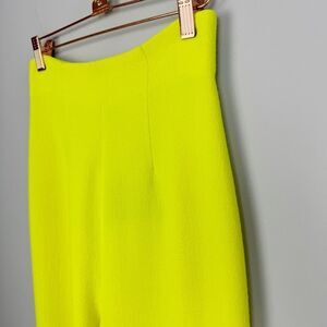 Absolutely stunning neon yellow voluminous flare pants by designer Sergio Hudson. Super high rise waist. Back zipper closure. Flat front. Wool-crepe non stretch fabric. Elongating effect. Brand NWT. Women’s size 2.