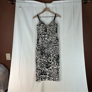 SERGIO HUDSON Women’s Size XXS Dress Midi Bodycon Animal Print NWT Black White, stretch, new with tags! Adjustable straps, so cute! Back slit