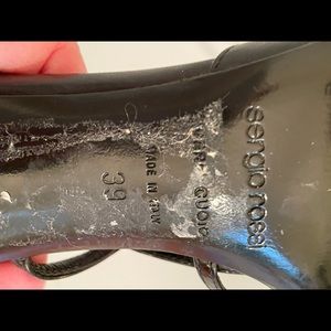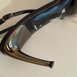 SERGIO ROSSI - sexy black slingbacks with gunmetal tone heel in Louis shape. 3 inch heel. Size 39, feels like size 8. Medium width, doesn’t pinch. EUC, only wore a few times. And now I can’t wear heels at all. Made in Italy.