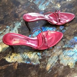Metallic red strappie heels, size 6, worn a few times, In pristine condition!!