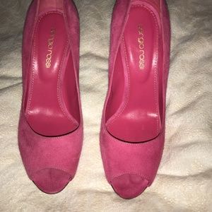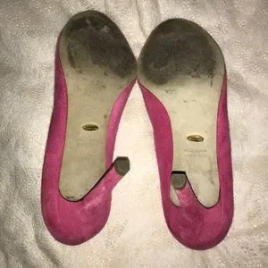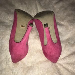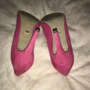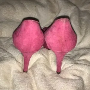 PINK SUEDE 3.5” HEELS WELL WORN GOOD CONDITION MODERATE SCUFFS AT HEELS SIZE 6.5 SEE PHOTOS
