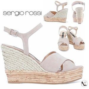 SERGIO ROSSI Mayan Sand Royal suede wedge sandals leather platform espadrilles