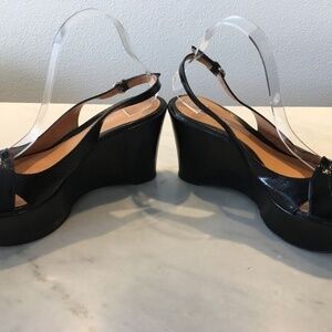 SERGIO ROSSI PLATFORM BLACK PATENT LEATHER SANDALS SZ 38