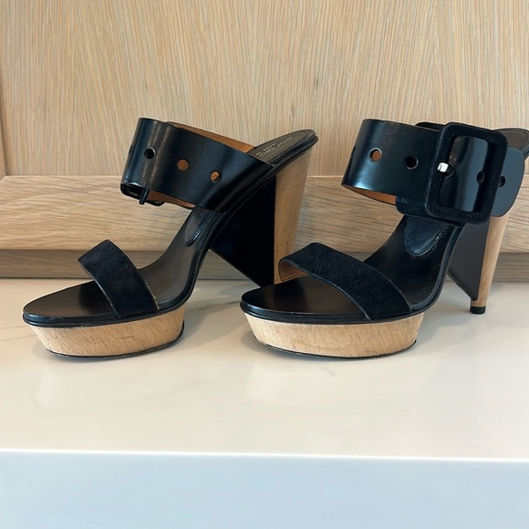 Good used condition. Marks on heels and shoes a bit on wooden parts. I have not tried to clean. See photos.