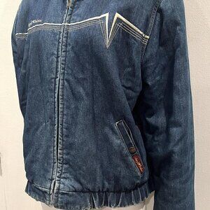 SERGIO VALENTE CHAMBRAY DENIM EMBROIDERED JACKET IN A SIZE SMALL. THE JACKET FEATURES A CHAMBRAY DENIM WITH NATURAL WEAR FADING. THE JACKET FEATURES EMBROIDERY AT THE FRONT (SOME OF WHICH IS MISSING, SEE PICS). EDGES ARE STATING TO SEPARATE- AWESOME WEAR!! AUTHENTIC VINTAGE SERGIO ITEM.