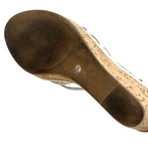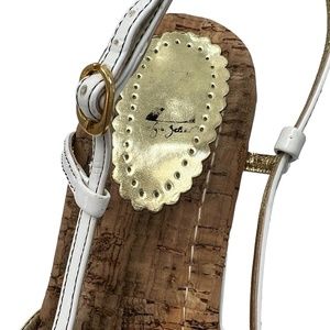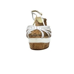 SERGIO ZELCER WHITE PATENT LEATHER & CORK BOTTOM SANDAL PLATFORM WEDGES