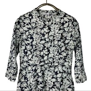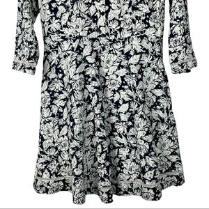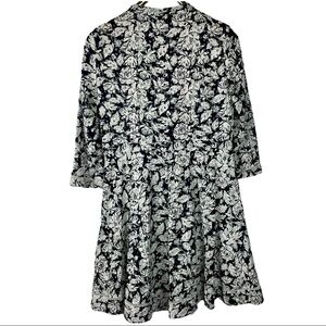 DETAIL: EYELET. OPEN STITCH INLAY AT HEMS. FIT AND FLARE. 3/4 LENGTH SLEEVES. SIDE ZIPPER. BUTTON DOWN FRONT. ROUND NECK. FRONT BODICE AND SKIRT LINED. BACK AND ARMS LEFT UNLINED.