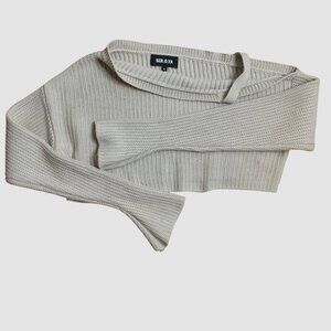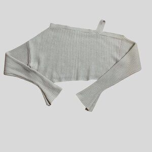 SER.O.YA Agnes One Shoulder Cropped Sweater S Tan Bell Sleeve Sexy Minimal Knit