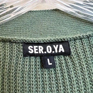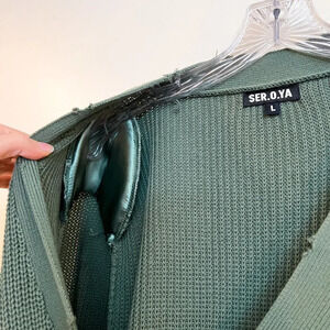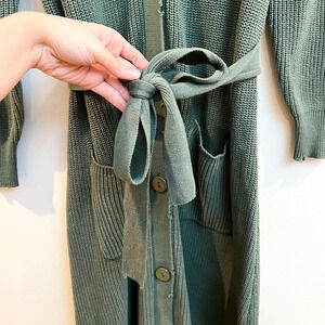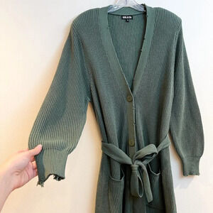 SER.O.YA Amanda Green Knit V Neck Tie Waist Button Down Sweater Maxi Dress L