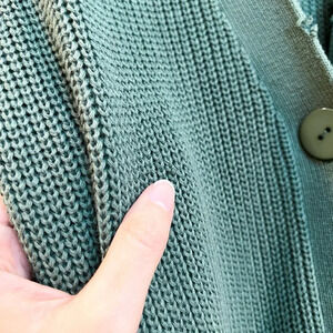 SER.O.YA Amanda 100% Cotton Designer Green Knit V Neck Tie Waist Button Down Sweater Maxi Dress L
