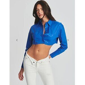 SER.O.YA CHI WAX COATED CROP TOP, 5 BOTTON DOWN, LONG SLEEVE, SUPER CROP, SMALL