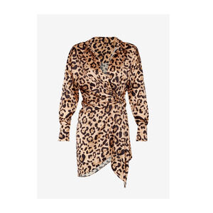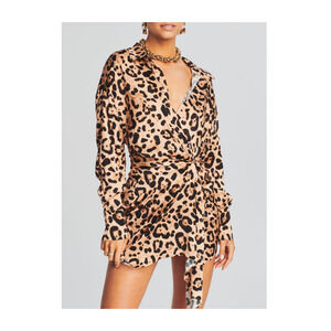 SER.O.YA Demi Silk Dress Leopard Satin Long Sleeve Satin Wrap Party XS 495$ NWT