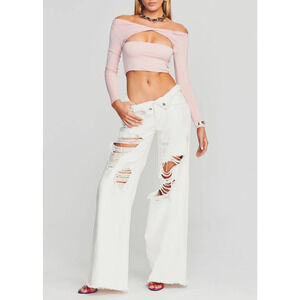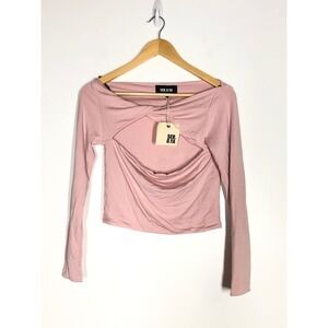 SER.O.YA Ellis Top Long Sleeve Twist Front Cut Out Cropped Pastel Pink NWT Large
