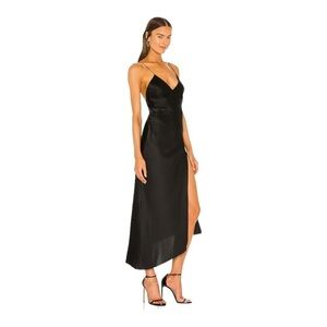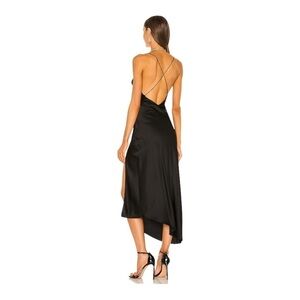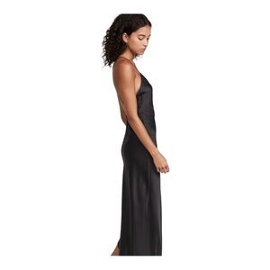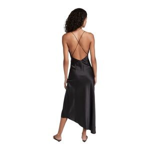 Crafted from black silk for a classic night-out look, this SER.O.YA features a number of eye-catching details, like a faux-wrap waist, a deep front slit, and thin crisscross straps at the open back.
