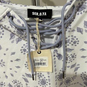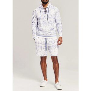 Bandana printed hoodie with lace-up detail. Contrast strip hem and cuffs. Shown here in White Bandana Shell.